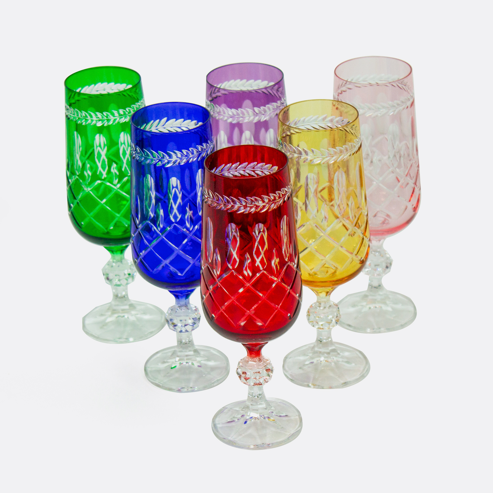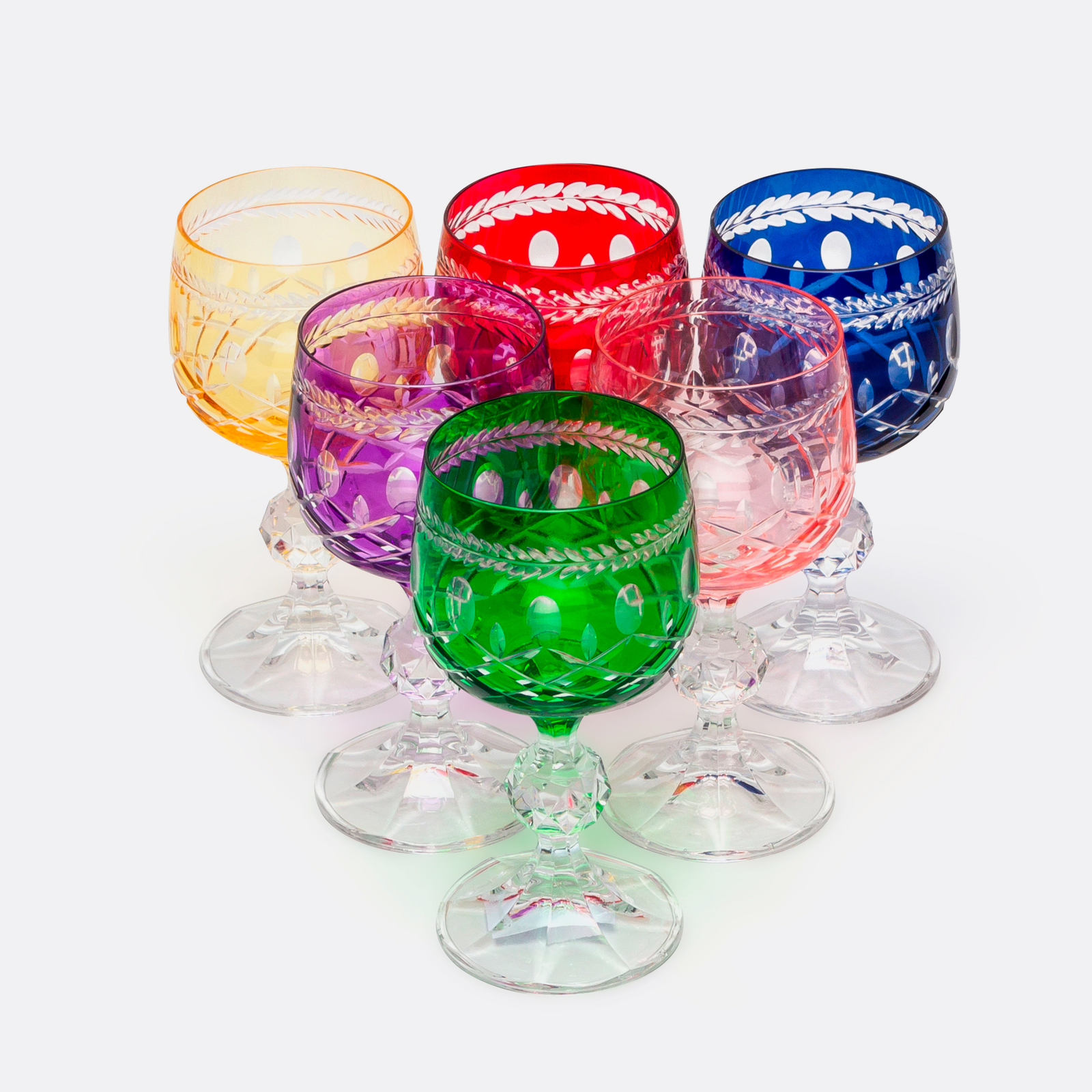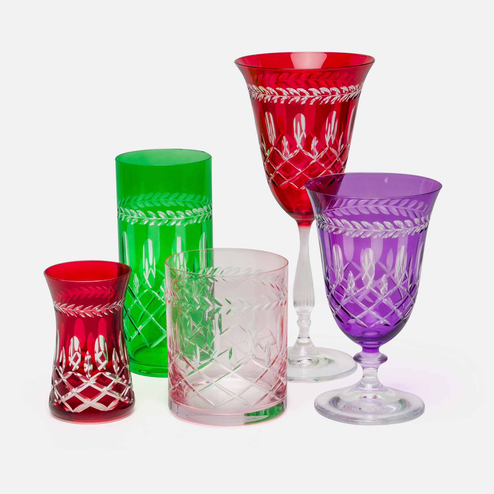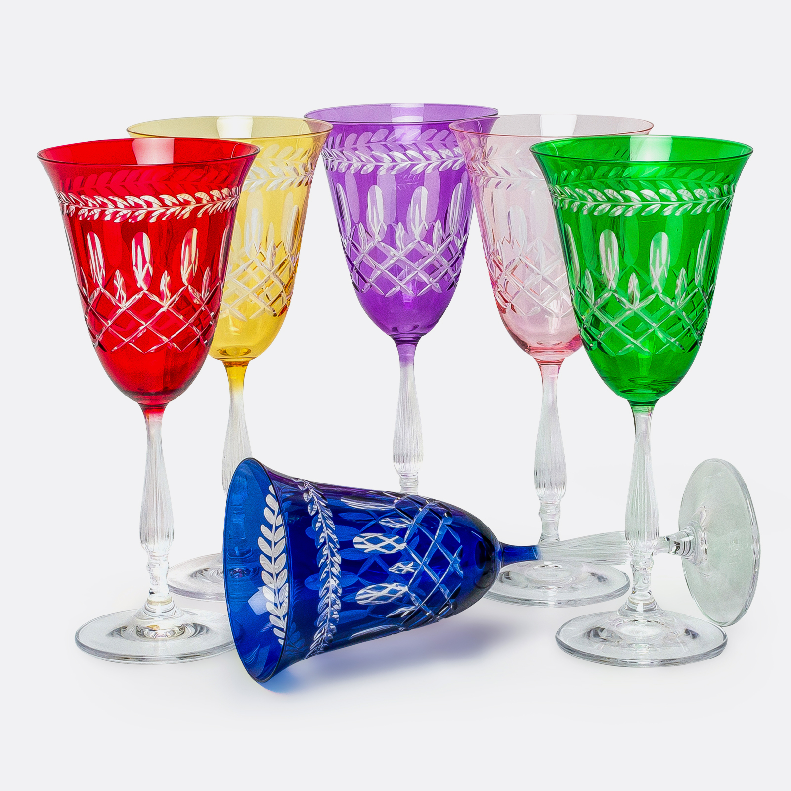 Bohemia Crystal bardaklar üzerine, LeonarteCasa tasarımcılarının desen tasarımları ve ustalarının el işçiliği ile üretilmiştir.